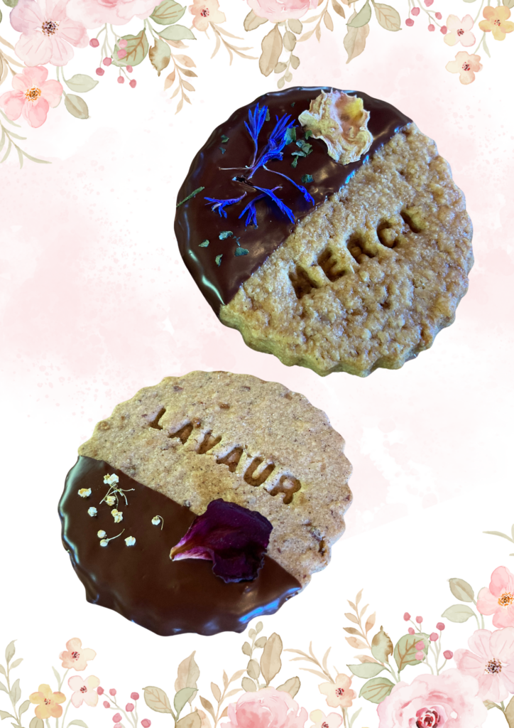 Des gourmandises réduites en sucre IG bas et des préparations salées avec des fleurs comestibles, à base d’ingrédients locaux, de qualité et biologiques.