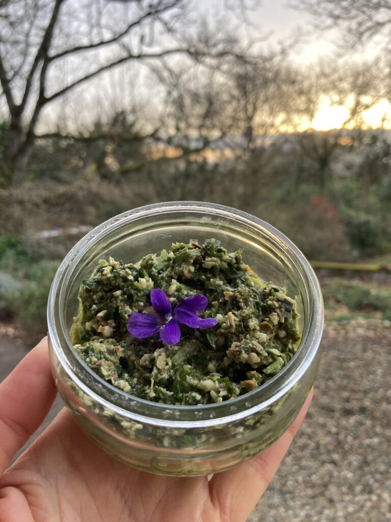 Un mélange croquant avec des amandes, noisettes et graines de tournesol, relevé par la fraicheur du basilic, persil et plantes sauvages.